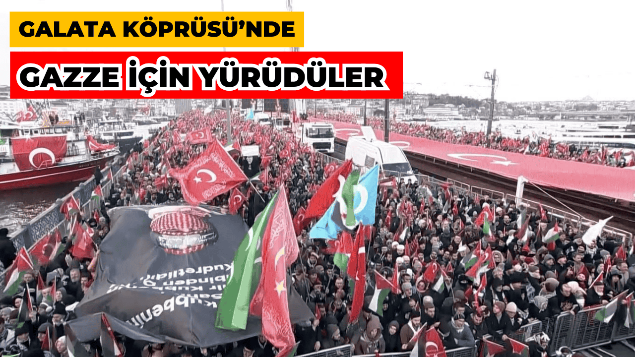 “Sinmiyoruz, susmuyoruz Filistin’i unutmuyoruz” etkinliği kapsamında İstanbul’un farklı noktalarında toplanan vatandaşlar, sabah namazı öncesi bir araya gelerek Galata Köprüsü’ne yürüyüşe geçti. Soğuk havaya rağmen yoğun katılımın olduğu yürüyüşe bakanlar, siyasi temsilciler ve çok sayıda vatandaş Türk ve Filistin bayraklarıyla destek verdi.