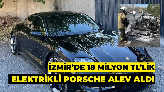 İzmir’de 18 milyon TL değerindeki elektrikli Porsche aniden alev alarak kullanılamaz hale geldi. Araçta bulunan sürücü, kapıların otomatik kilitlenmesi nedeniyle kısa süre mahsur kaldı ancak acil kilit açma tuşunu bulması sayesinde hafif yaralı olarak kurtuldu.