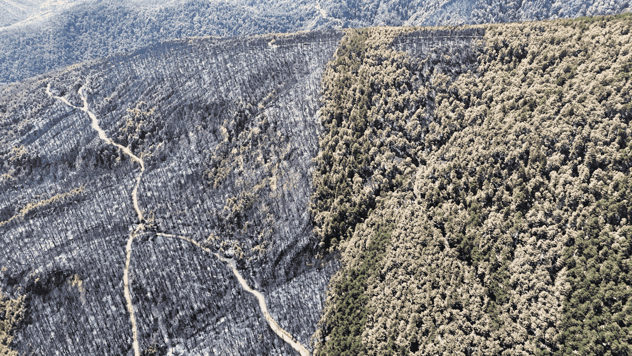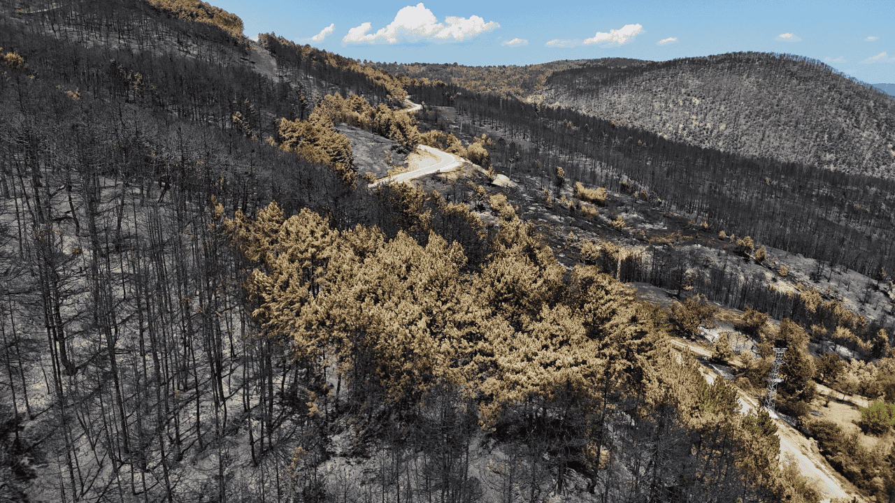 Karabük’teki orman yangınları, binlerce dönüm ormanlık alanı tahrip etti. Yangın sonrası yapılan incelemelerde, yemyeşil doğanın yerini sarı ve kahverengi tonlarının aldığı görüldü. Dronla çekilen görüntülerde, siyaha dönen alanlar, kuruyan fidanlar ve is tutmuş topraklar, yangının doğaya verdiği büyük zararı gözler önüne serdi.