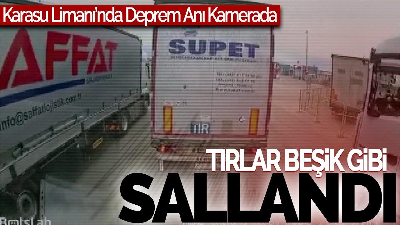 Karasu Limanı’nda park halindeki tırların adeta birer oyuncak gibi sağa sola sallandığı anlar, bir sürücünün araç içi kamerası tarafından kaydedildi. Görüntülerde sürücülerin panik halinde “Deprem mi oluyor, ne oluyor” şeklinde bağırdıkları duyuldu.