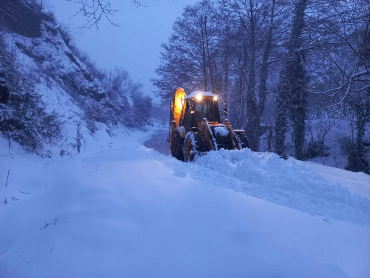 Ekiplerimiz, herhangi bir olumsuzluğa karşı tam teyakkuz halinde sahada görev başında. Devam eden kar yağışının ulaşımı aksatmaması için ekiplerimiz sahada aralıksız çalışmalarını sürdürüyor. Vatandaşlarımızın kış lastiği ve zincir kullanmaları, zorunlu olmadıkça yola çıkmamaları büyük önem taşımaktadır" denildi.
