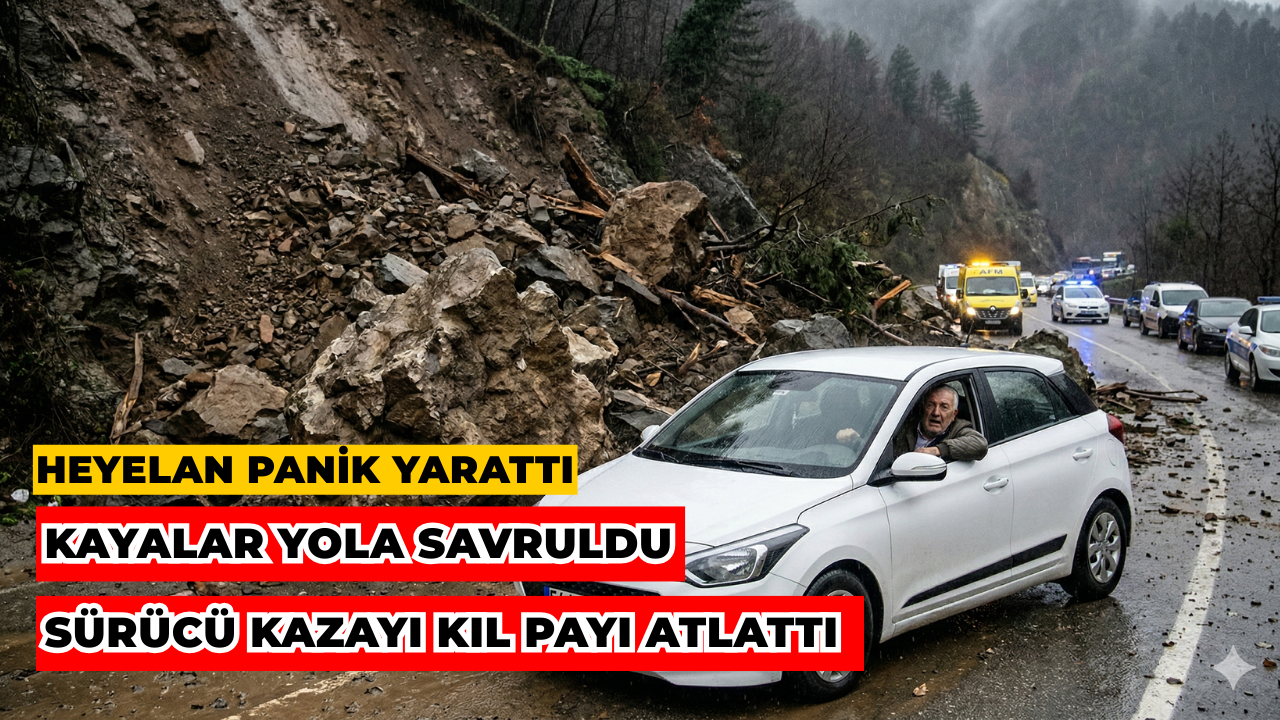 Son günlerde etkili olan yağışların ardından meydana gelen heyelanda, istinat duvarının bulunmaması nedeniyle kopan taş ve toprak parçaları trafiği tehlikeye soktu. O sırada bölgeden geçen bir sürücü, ani manevra yaparak kazayı son anda önledi. Yaşananlar çevredeki güvenlik kamerasına yansıdı.