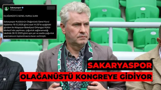 Kıratlı’nın istifası üzerine yeşil-siyahlı yönetim, olağanüstü genel kurul sürecini başlattı. Kulübün sosyal medya hesabından yapılan açıklamada, olağanüstü genel kurul toplantısının 19 Aralık 2025 tarihinde saat 14.00’te Adapazarı Belediyesi Orhangazi Kültür Merkezi’nde yapılacağı duyuruldu. Açıklamada, çoğunluk sağlanamadığı takdirde genel kurulun 28 Aralık 2025’te aynı yer ve saatte çoğunluk aranmaksızın gerçekleşeceği belirtildi.