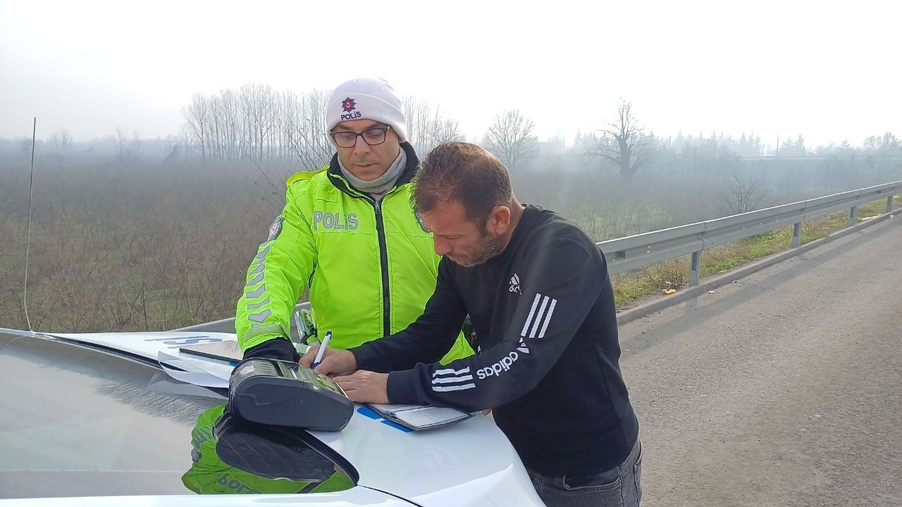 Avrupa ile Anadolu arasındaki en önemli karayolu geçişlerinden biri olan Düzce'de ekipler, kış lastiği takmayan sürücülere sezonun ilk cezalarını uyguladı.