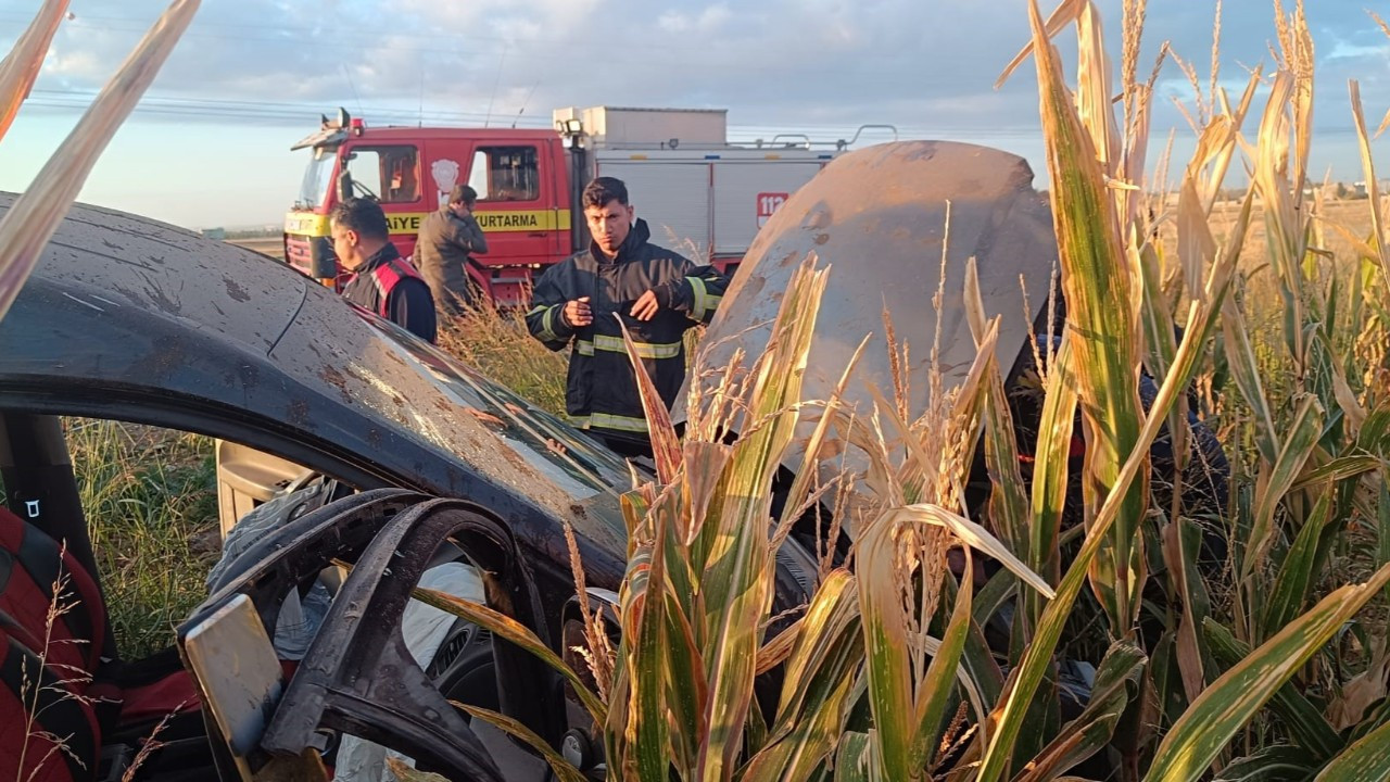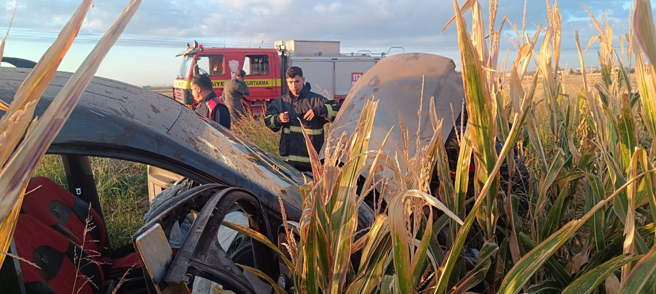 Kontrolden çıkan hafif ticari araç mısır tarlasına yuvarlandı: 5 yaralı