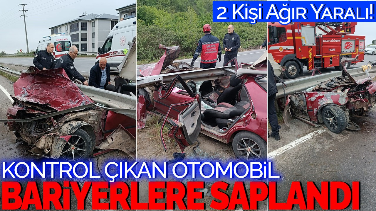 Sakarya’nın Söğütlü ilçesinde kontrolden çıkan otomobil, bariyerlere saplandı. Kağıt gibi ezilen otomobilde 2 kişi ağır yaralandı.