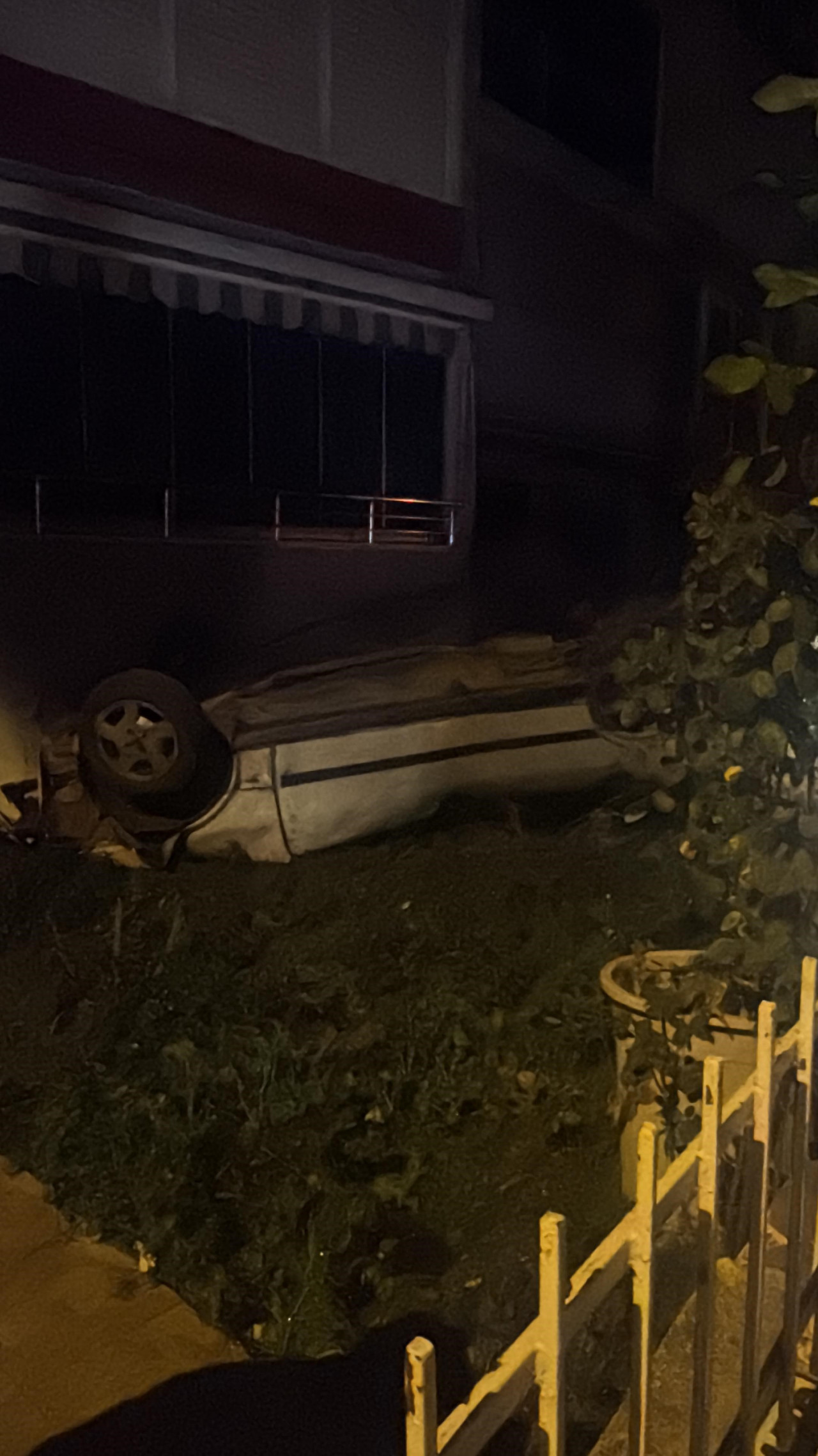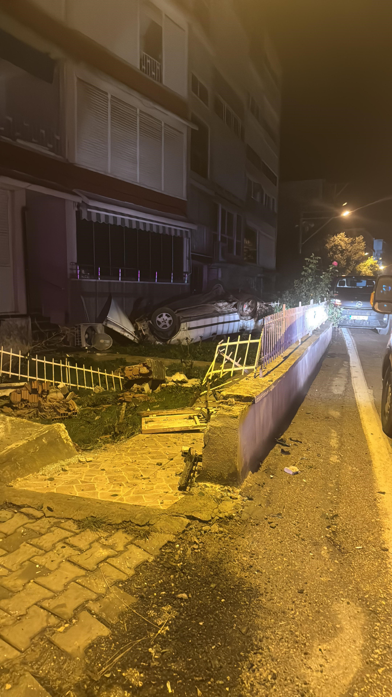 Kontrolden çıkan otomobil sitenin duvarı aşıp takla attı : 1 yaralı