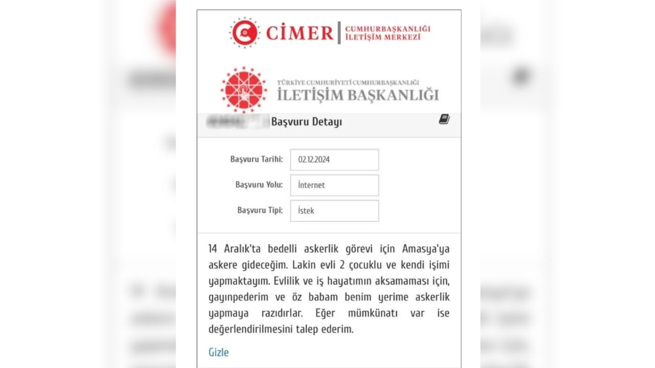 Konya'da bir vatandaş Cimer'e yazarak, askerliğini kendisinin yerine babasının ve kayınpederinin yapmasını talep etti.