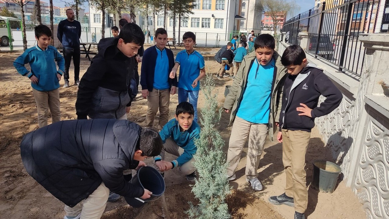 Konya’nın Kulu ilçesinde 60. Yıl Ortaokulu öğrencileri, okul bahçesinde 75 karaçam fidanını toprakla buluşturarak çevre bilincine katkı sağladı.