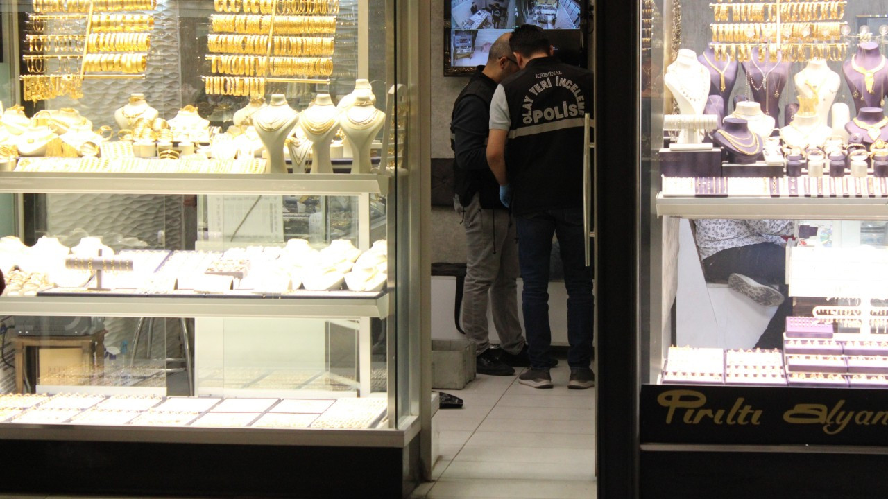 Bir kuyumcuya yaşlı kadın kılığında giren şahıs, altınlara bakma bahanesiyle yaklaştığı sarrafın kafasına taşla vurarak soygun yapmaya kalkıştı. Sarraf ile zanlı arasında kısa süreli boğuşma yaşanırken, şüpheli kuyumcuya biber gazı sıkarak kaçmaya çalıştı.