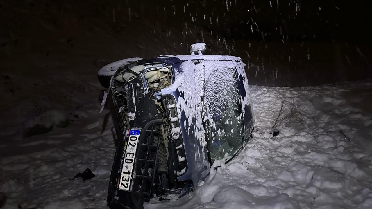 Malatya’nın Doğanşehir ilçesinde kar yağışı nedeniyle kayganlaşan yolda kontrolden çıkan otomobil, şarampole yuvarlandı.