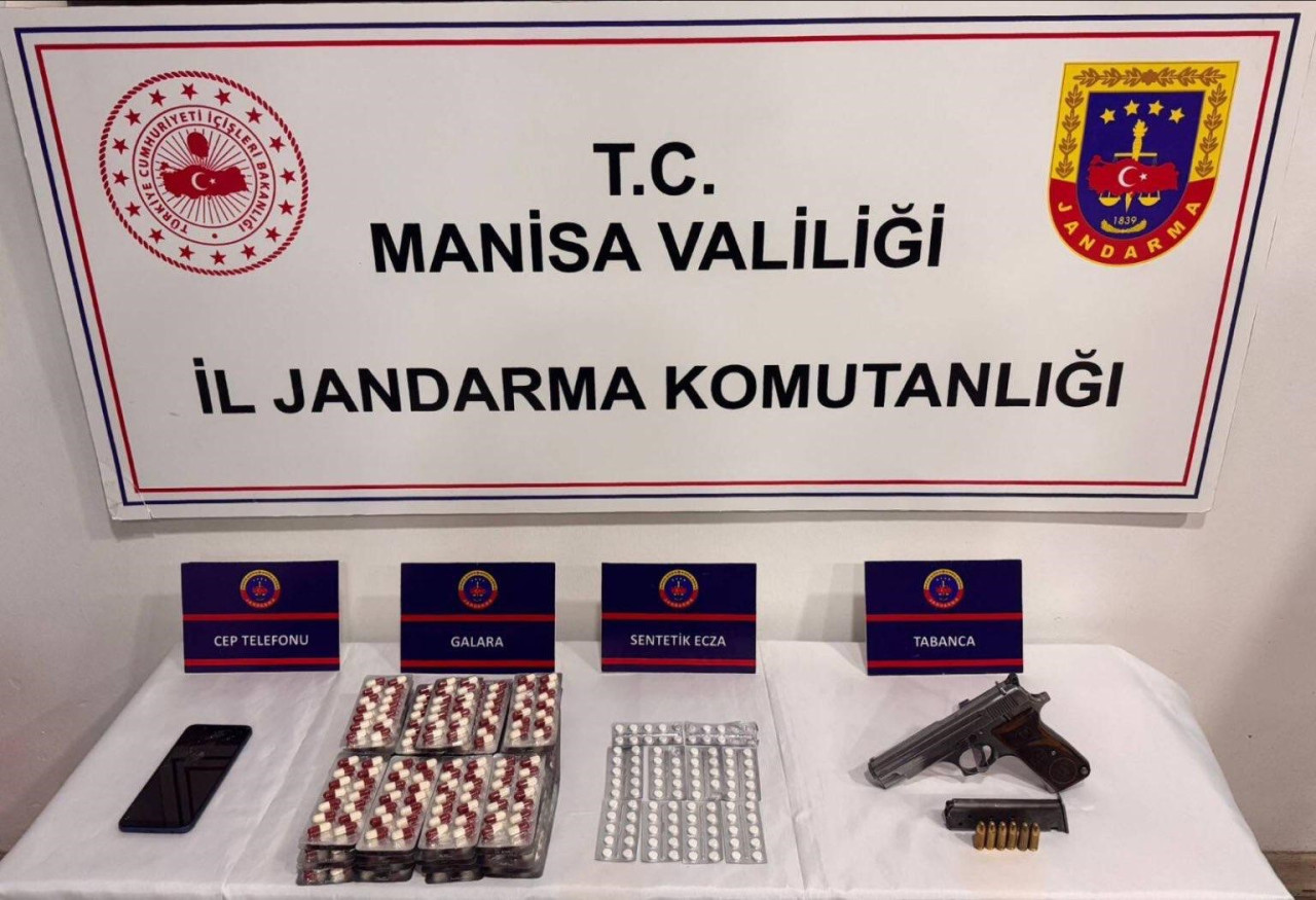 Manisa’nın Şehzadeler ilçesinde bir şahsın ev ve aracında yapılan aramada 667 adet sentetik ecza hapı ve bir tabanca ele geçirildi.