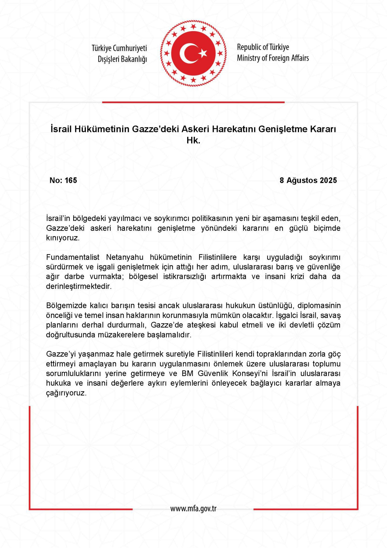 Dışişleri Bakanlığı, İsrail'in bu kararını en güçlü biçimde kınadıklarını açıkladı.