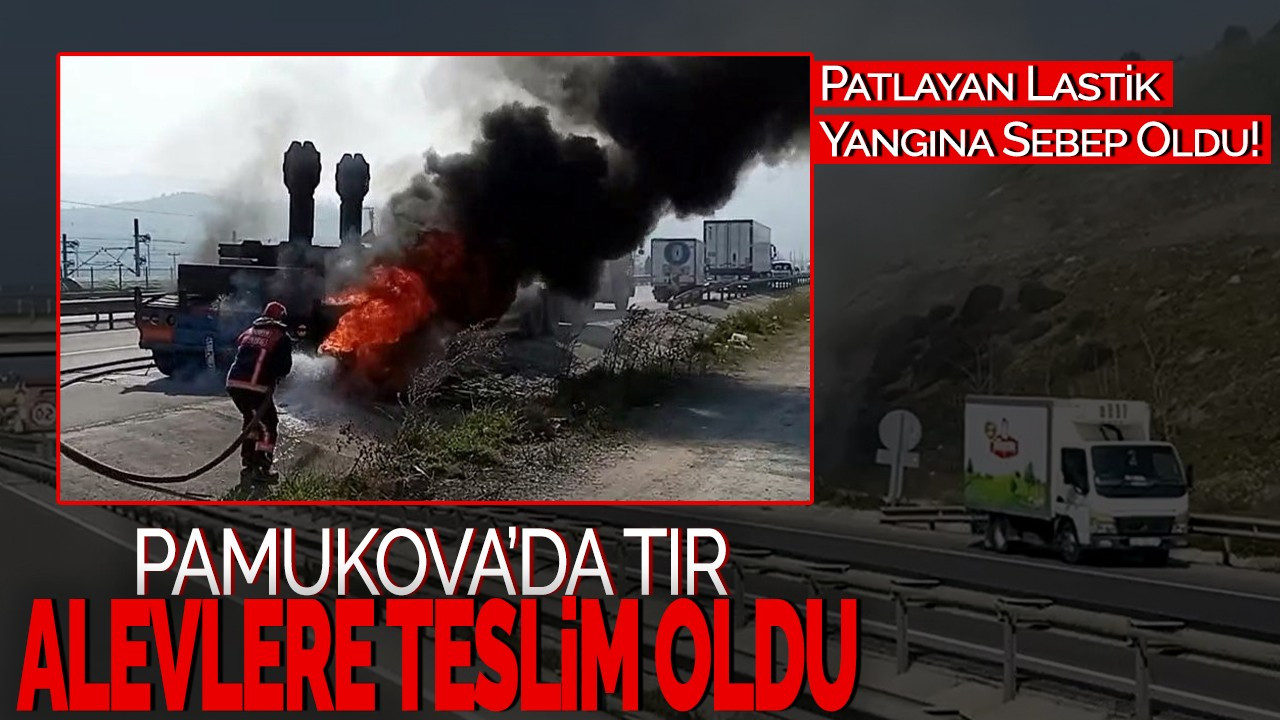 Pamukova'da Tır Alevlere Teslim Oldu! Patlayan Lastik Yangına Sebep Oldu!