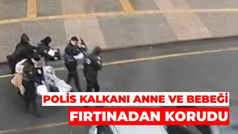 Adalet Sarayı çevresinde görev yapan polis ekipleri, kalkanlarını kullanarak anne ve bebeğin etrafında koruyucu bir bariyer oluşturdu. Polislerin, yağmur ve fırtınanın etkisini azaltmak amacıyla kalkanlarla yaptığı bu müdahale çevredeki kameralar tarafından kaydedildi.