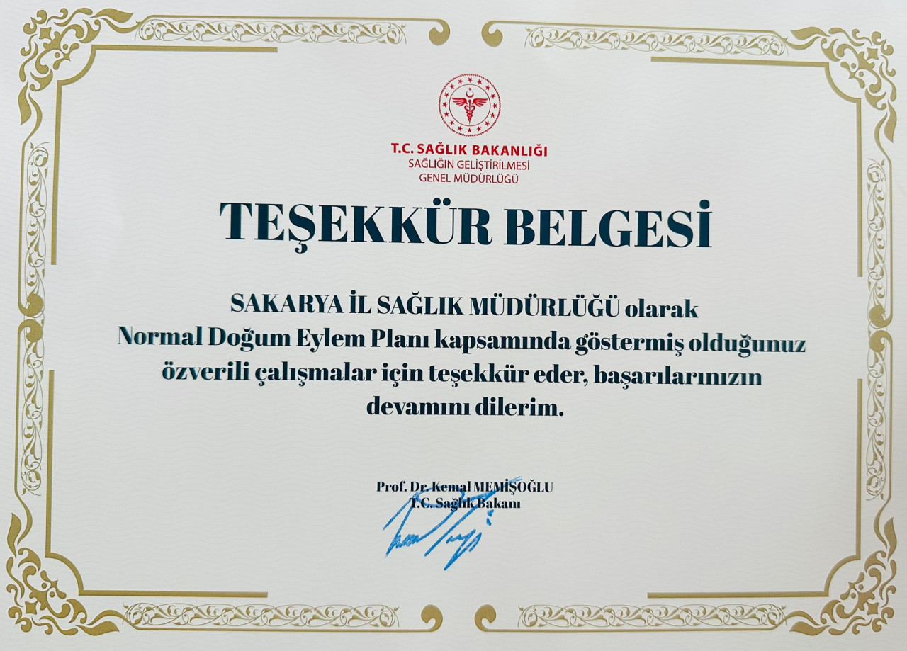Sakarya İl Sağlık Müdürlüğünün yürütmüş olduğu “Normal Doğum Eylem Planı” Bakanlıktan takdir topladı.