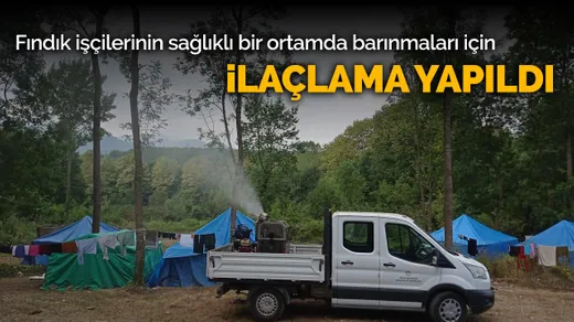 Yapılan çalışma ile ilgili Sağlık İşleri Müdürlüğü’nden yapılan açıklamada, “İlçemize çalışmak için aileleri ile birlikte gelen mevsimlik tarım işçilerinin sağlıklı bir ortamda konaklayabilmeleri ve olası hastalıkların önüne geçilebilmesi adına ekiplerimiz çadırların ve konaklama alanlarının çevresinde ilaçlama çalışmalarına başlamıştır. Fındık sezonunun sonuna kadar ilçemizde misafir olacak olan mevsimlik işçilerin çadırlarının ilaçlama çalışmaları düzenli olarak devam edecektir” ifadelerine yer verildi.