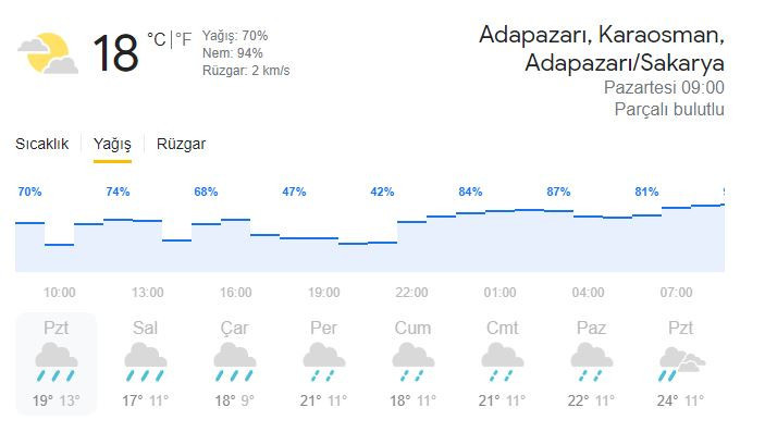 Yeni haftaya dair beklenen son hava durumu tahmini geldi. Meteoroloji'den yapılan değerlendirmelere göre; Sakarya’da yağışlar etkisini artıracak.