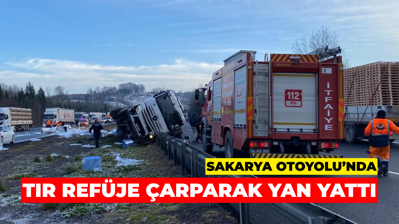 Sakarya Otoyolu’nda Tır Refüje Çarparak Yan Yattı: 1 Yaralı