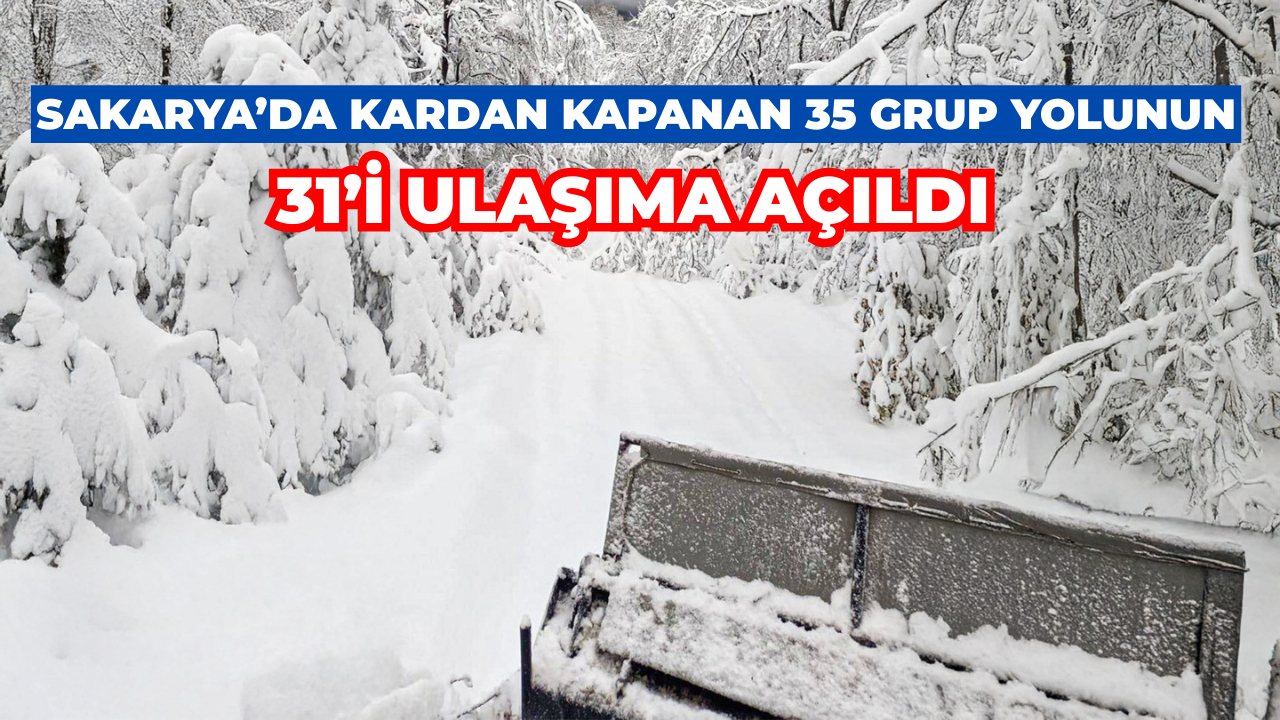 Sakarya’da etkili olan yoğun kar yağışı nedeniyle kapanan 35 grup yolundan 31’i, belediye ekiplerinin çalışmaları sonucu yeniden ulaşıma açıldı. Kapalı kalan 4 grup yolunda çalışmalar sürüyor.