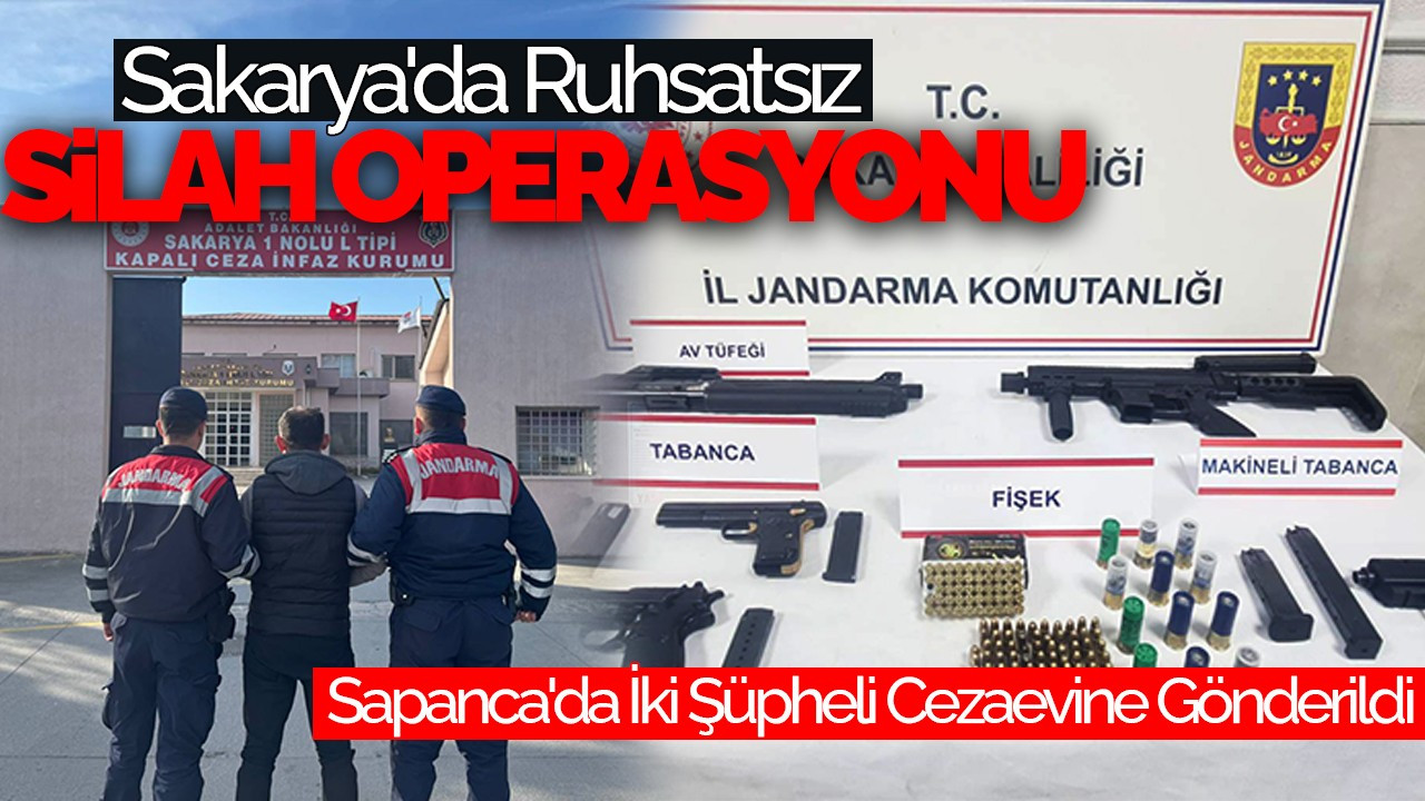 Sakarya İl Jandarma Komutanlığı ekiplerince 27 Nisan 2025 günü Sapanca İlçesi Uzunkum Mahallesi'nde Kaçakçılık ile Mücadele kapsamında yürütülen operasyonda, S.Y. (E/69) ve T.K. (E/38) isimli şahısların iş yeri ve eklentilerinde arama yapıldı. Yapılan aramalarda, 3 adet ruhsatsız tabanca, 2 adet ruhsatsız makineli tabanca, 1 adet ruhsatsız av tüfeği, 120 adet 9 mm çapında fişek ve 9 adet tabanca şarjörü ele geçirildi. Olayla bağlantılı olarak T.K. ve S.Y. isimli şahıslar gözaltına alındı.