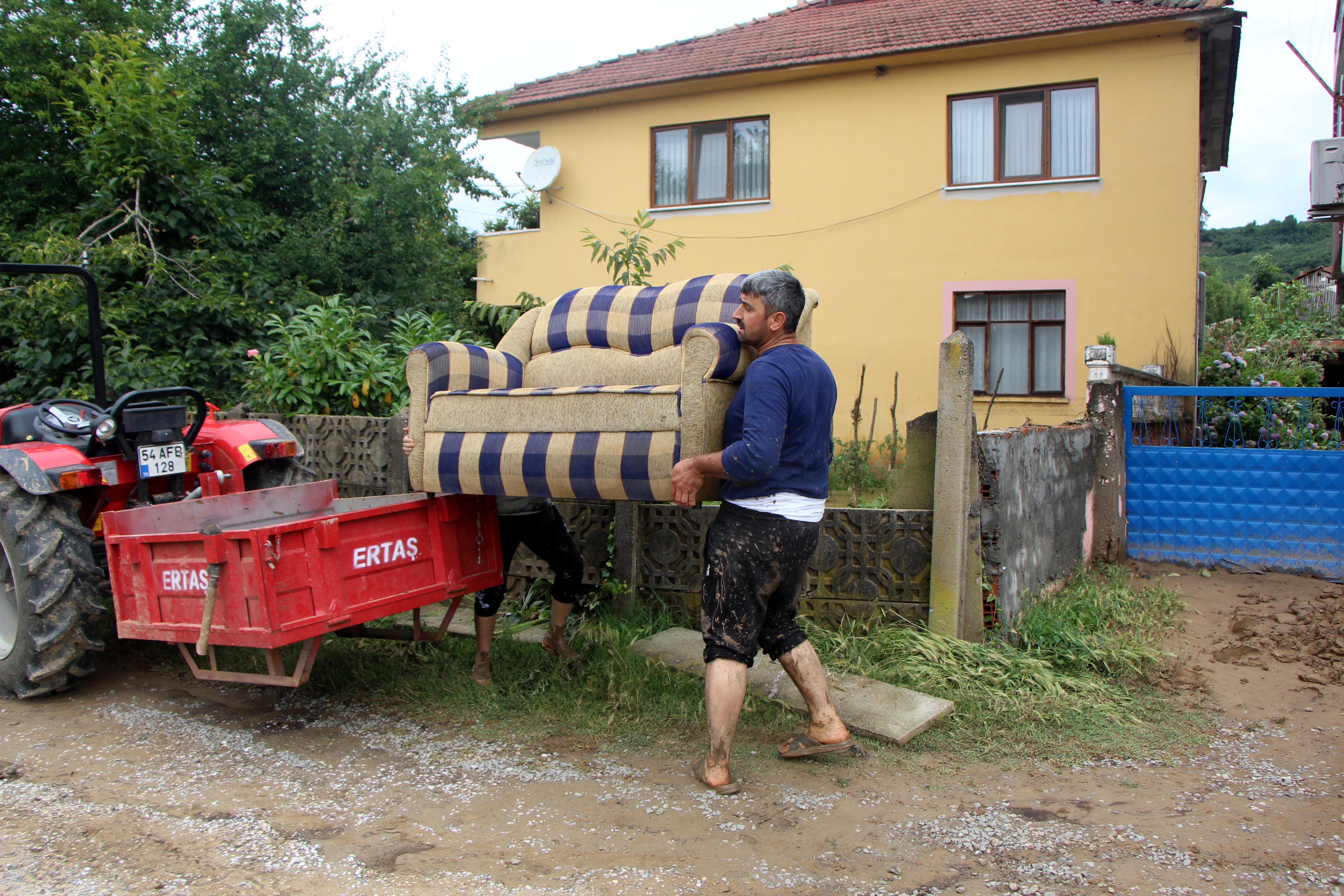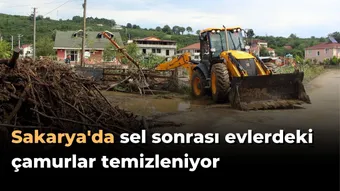 Sakarya'da sel sonrası evlerdeki çamurlar temizleniyor