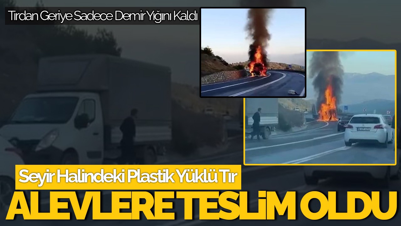 Pamukova-İznik karayolu Pekmezli Rampası mevkiinde, M.İ. idaresindeki plastik hammadde yüklü tır, seyir halindeyken motor kısmında çıkan yangın nedeniyle alevlere teslim oldu.