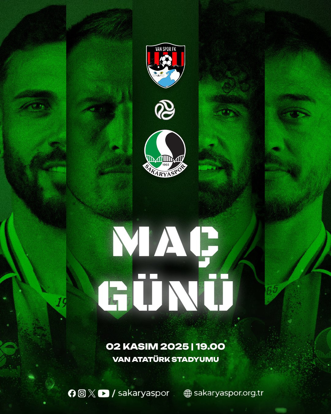 Trendyol 1. Lig 12. hafta mücadelesinde Sakaryaspor, bugün deplasmanda İmaj Altyapı Van Spor FK ile karşı karşıya gelecek. Saat 19:00'da Van Atatürk Stadyumu'nda başlayacak olan kritik karşılaşmayı İzmir bölgesi hakemlerinden Davut Dakul Çelik yönetecek. Sakaryaspor, mücadeleye özel olarak hazırlanan "Nehir" formasıyla sahaya çıkacak.