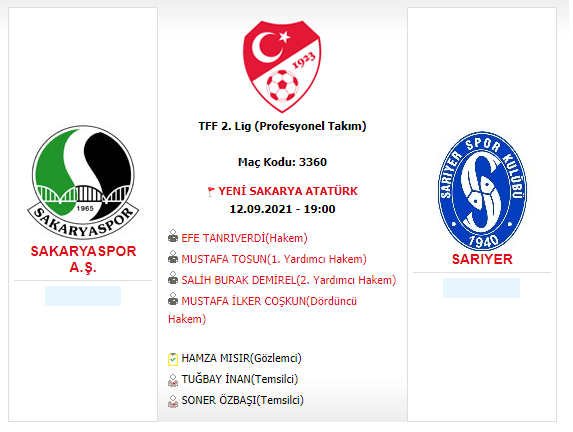 Sakaryaspor'un, 12 Eylül'de kendi evinde oynayacağı Sarıyer maçının hakemi belli oldu.
