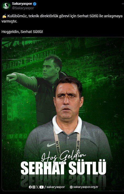 Kulüpten yapılan kısa açıklamada, “Teknik Direktör İrfan Buz ile yollarını ayıran Sakaryaspor, Serhat Sütlü ile anlaşma sağladı” ifadelerine yer verildi.