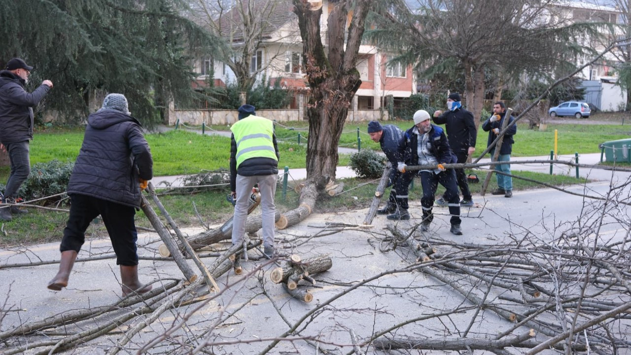 cadde ve sokaklar ile yol kenarlarında devrilen ağaçlara ve kırılan dallara müdahale