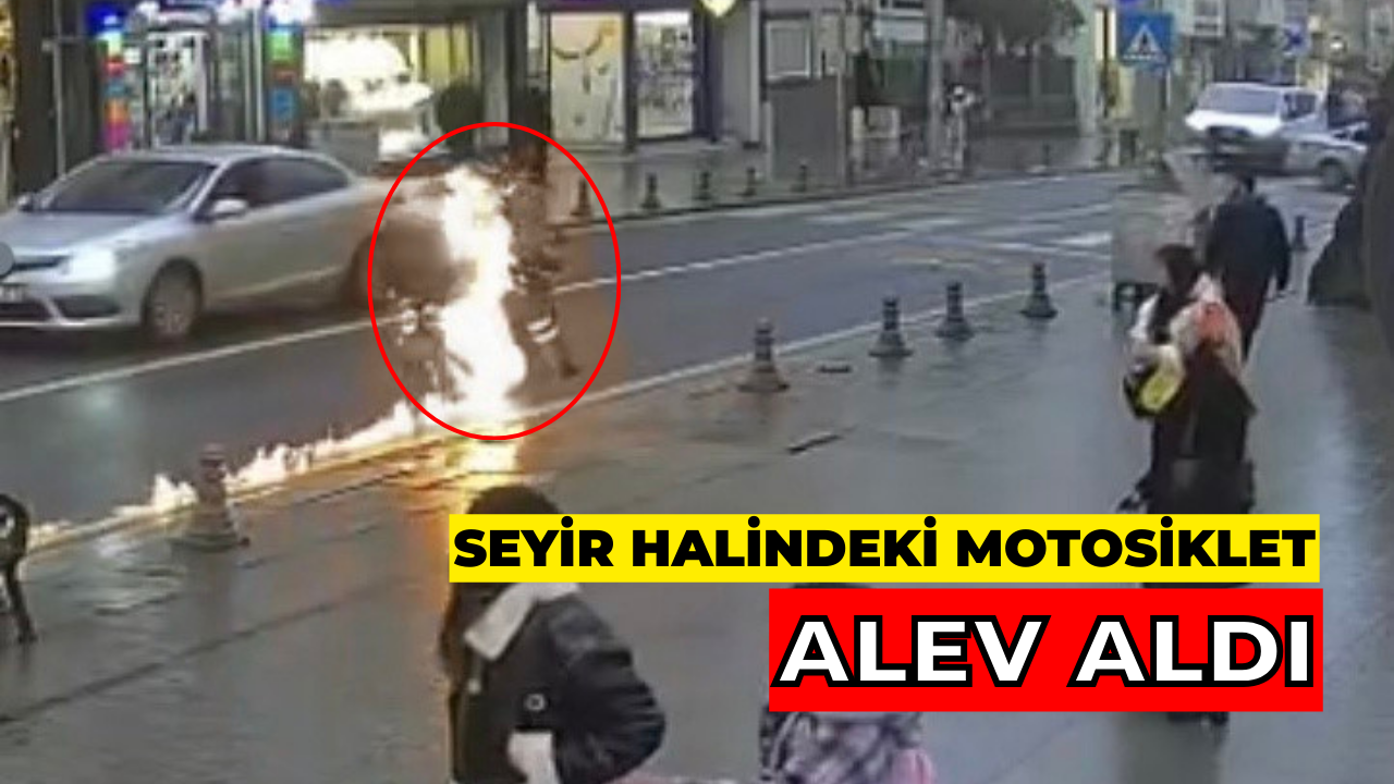 Tekirdağ’ın Çorlu ilçesinde seyir halindeki bir motosikletin bir anda alev topuna dönmesi paniğe neden oldu. O anlar çevredeki güvenlik kameralarına yansıdı.