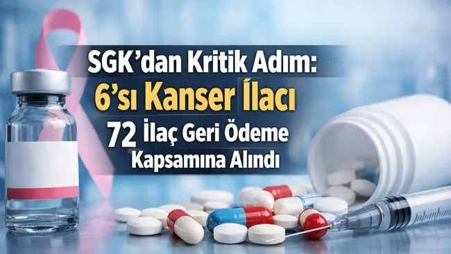 Sosyal Güvenlik Kurumu (SGK), farklı hastalıkların tedavisinde kullanılan toplam 72 ilacı geri ödeme listesine dahil etti. Yeni düzenleme kapsamında özellikle kanser hastaları için 6 yeni ilacın listeye eklenmesi dikkat çekerken, ilaçların büyük bölümünün yerli üretim olması da öne çıktı.
