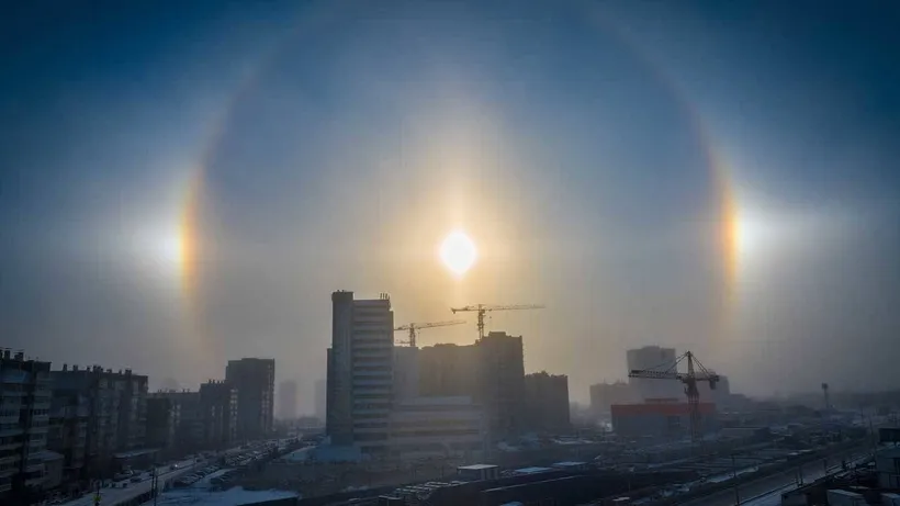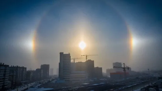 Rusya’nın Krasnoyarsk kentinde hava sıcaklığı eksi 30 dereceye kadar düştü. Bu ekstrem soğuk havada, nadir görülen bir atmosfer olayı olan “halo” gözlemlendi.