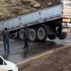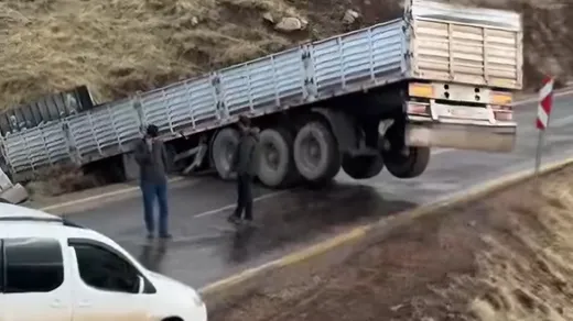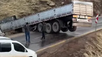 Siirt’te Kaygan Yolda Kontrolden Çıkan Tır Devrildi