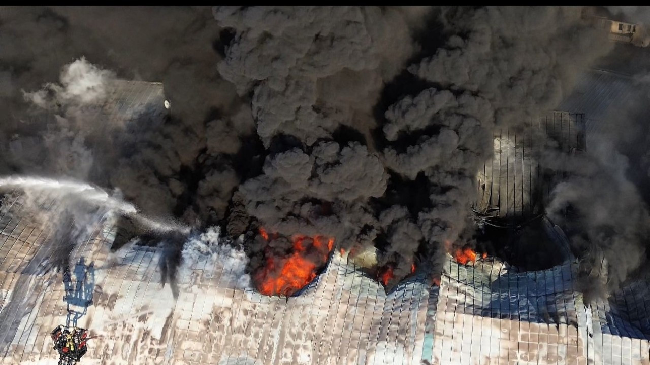 Sultanbeyli’deki Tekstil Atölyesi Yangını Havadan Görüntülendi
