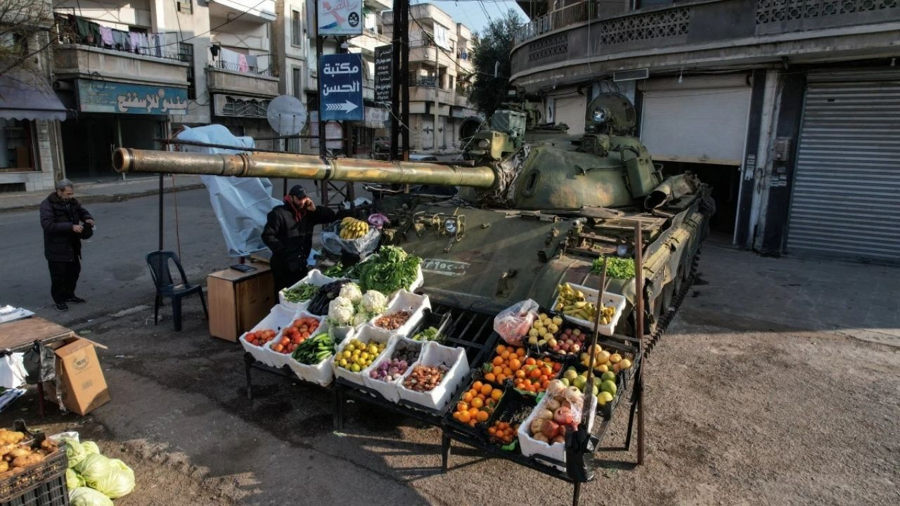 Halk, geçmişte korkuyla kaçtıkları tankların şimdi manav tezgahına dönüşmesini şaşkınlıkla karşıladı. Bu ilginç görüntü, hem savaşın izlerini silme çabasını hem de Suriye’de hayatın yeniden inşa edildiğini ortaya koyuyor.