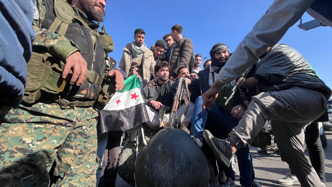Suriye'nin başkenti Şam'da eski Devlet Başkanı ve Beşar Esad'ın babası Hafız Esad'ın heykeli, muhalifler tarafından yıkılırken, Emevi meydanında sürüklendi.