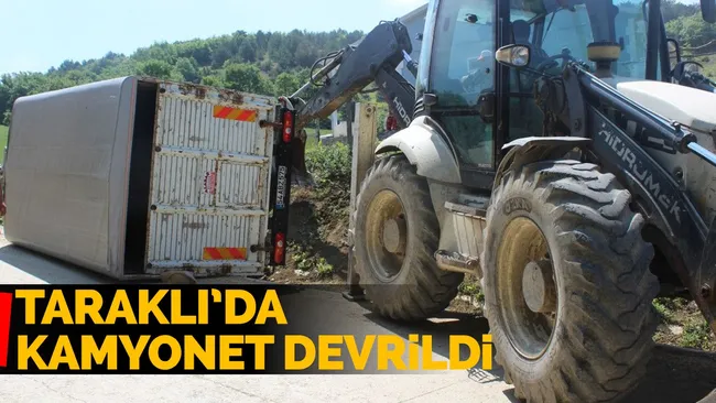 Sakarya'nın Taraklı ilçesinde devrilen kamyonetin sürücüsü kazadan yara almadan kurtuldu.