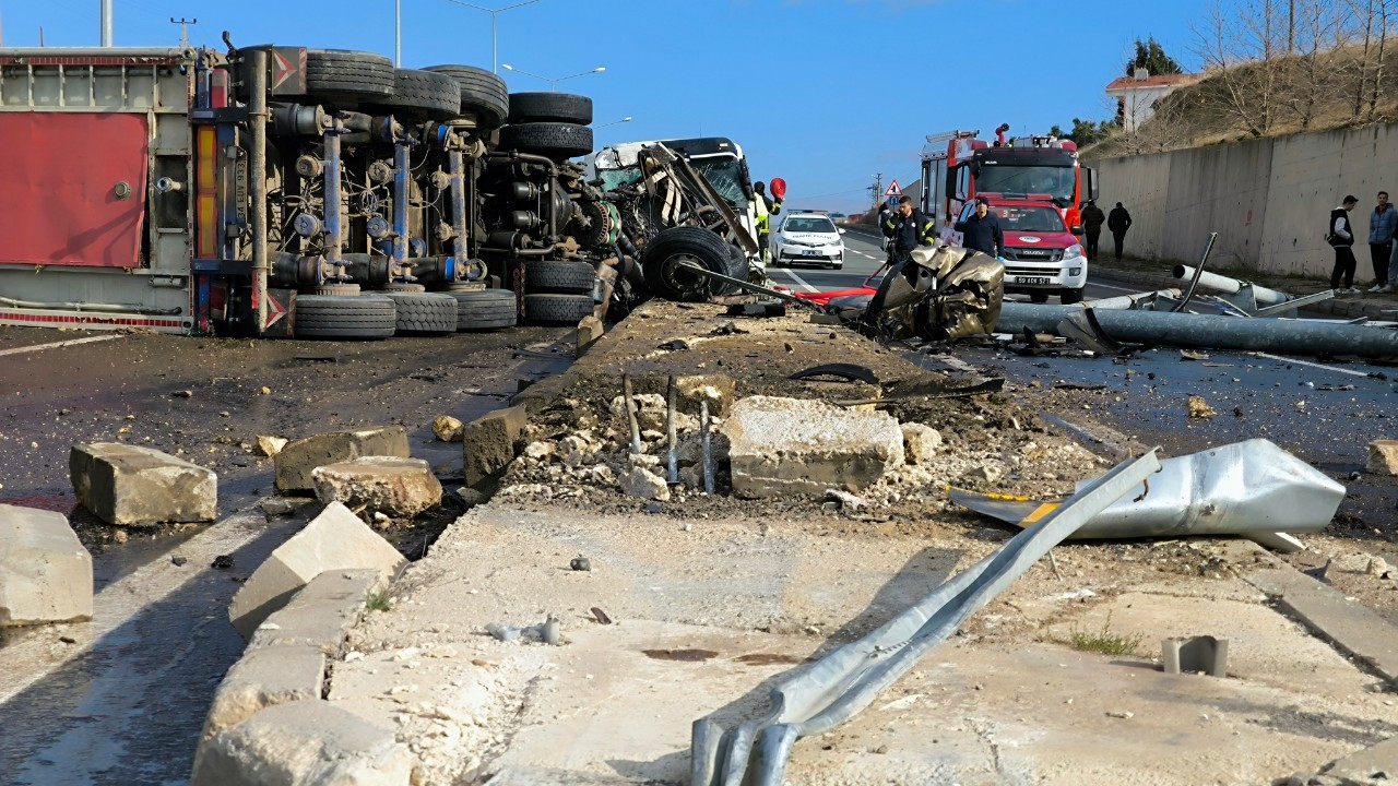 Tekirdağ'da Refüje Çarpan TIR Devrildi; 1 Yaralı