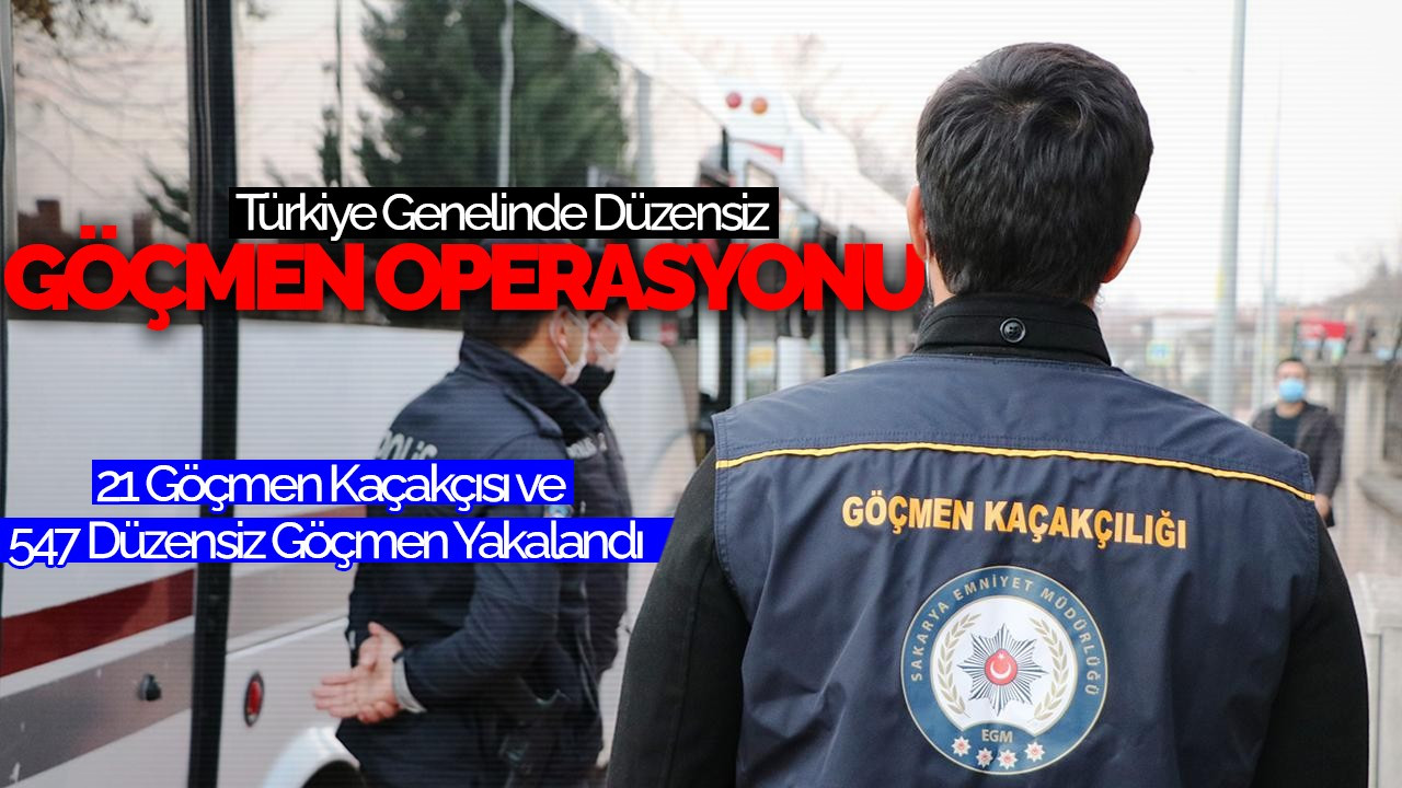 Türkiye Genelinde Düzensiz Göçmen Operasyonu: 21 Göçmen Kaçakçısı ve 547 Düzensiz Göçmen Yakalandı