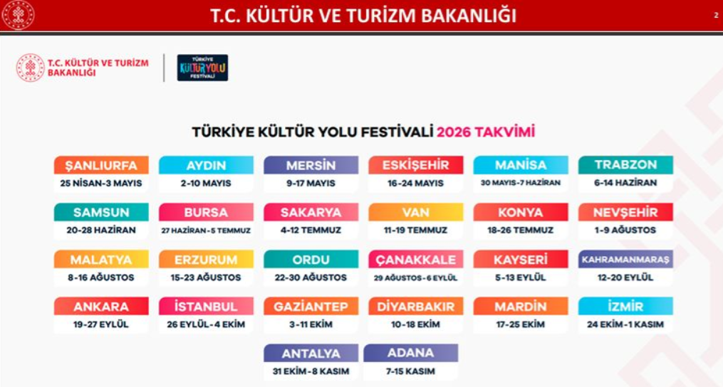 Türkiye Kültür Yolu Festivali 2026 Takvimi (Seçme Tarihler):