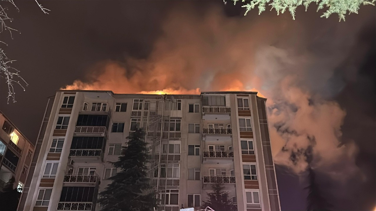 Uşak merkeze bağlı Fatih Mahallesi Birinci Petek Sokak’ta bulunan 7 katlı bir apartmanın çatı katında yangın çıktı.