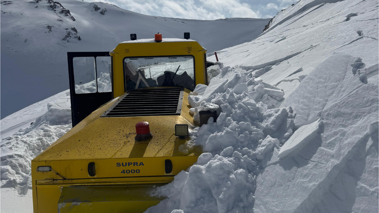 Van’ın Başkale ilçesinde yol açma çalışmaları sırasında iş makinesinin üzerine çığ düştü. Operatör, aracı terk ederek son anda kurtulurken, tonlarca kar iş makinesini tamamen kapladı.