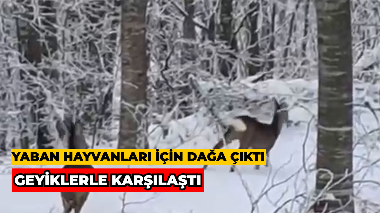 İlçe genelinde etkisini sürdüren yoğun kar yağışı, yaban hayatını da olumsuz etkilerken, bölgede yaşayan duyarlı bir vatandaş yaban hayvanlarını beslemek amacıyla aracına yüklediği yemlerle yüksek kesimlere çıktı. Ormanlık alanda yem bıraktığı sırada iki geyiği fark eden vatandaş, yaşanan anları cep telefonu kamerasıyla kayda aldı.