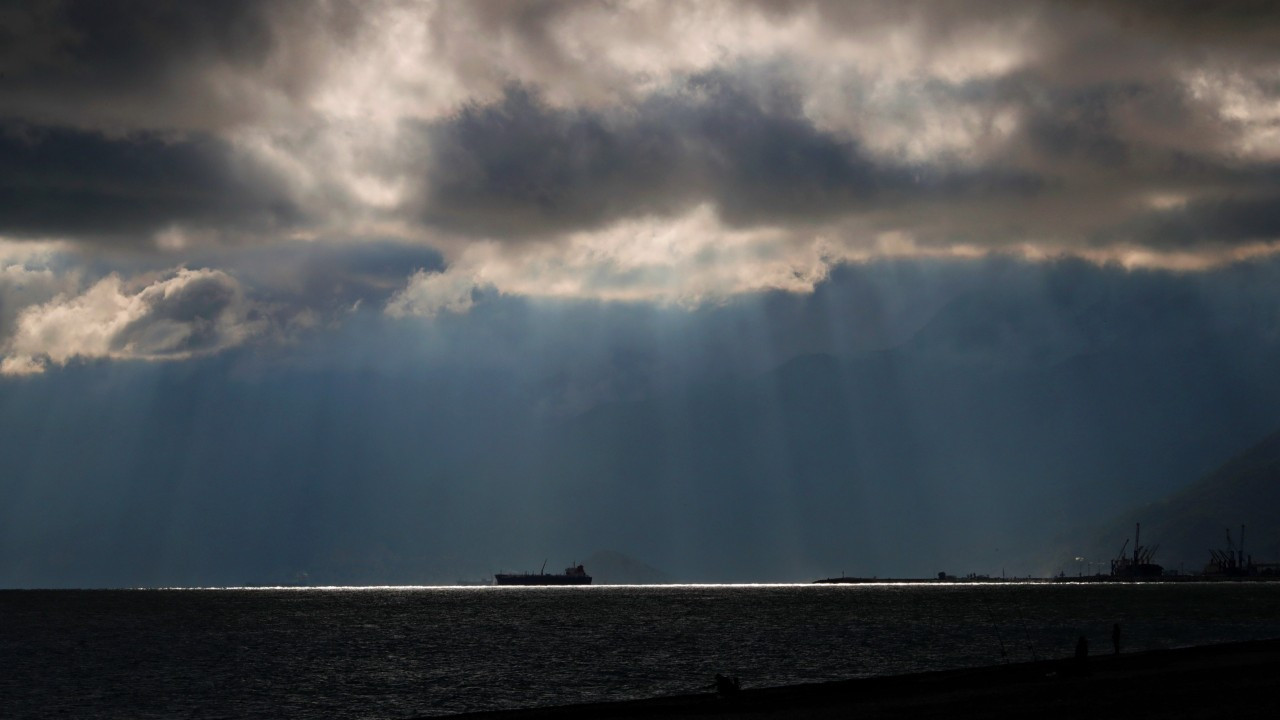 Antalya'da kuvvetli yağış uyarısının ardından yağmur bulutlarının arasından süzülen ışık hüzmesi görenleri hayran bıraktı.