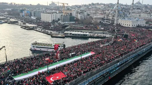 İstanbul, yeni yılın ilk gününde tarihin en büyük gösterilerinden birine sahne olacak. Galata Köprüsü'nde "Dün Ayasofya, Bugün Emevi, Yarın Aksa" yürüyüşü düzenlenecek. 308 sivil toplum kuruluşunun düzenleyeceği yürüyüşle İsrail zulmü lanetlenecek.