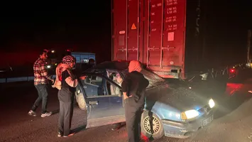 Manisa’nın Kula ilçesinde seyir halindeki otomobil, arıza nedeniyle yol kenarında duran tıra arkadan çarptı.