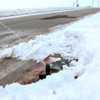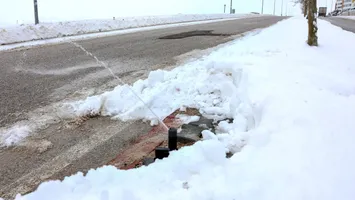 Konya'da kar yağışı sonrası oluşan buzlanma yol kenarına yerleştirilen fıskiyelerden akan solüsyonla çözülmeye başlandı.