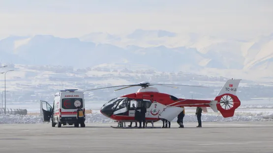 Van'ın Gürpınar ilçesinde yolu kardan kapalı mezradaki hasta Ali Karakoç (70), ambulans helikopterle alınarak hastaneye götürüldü.